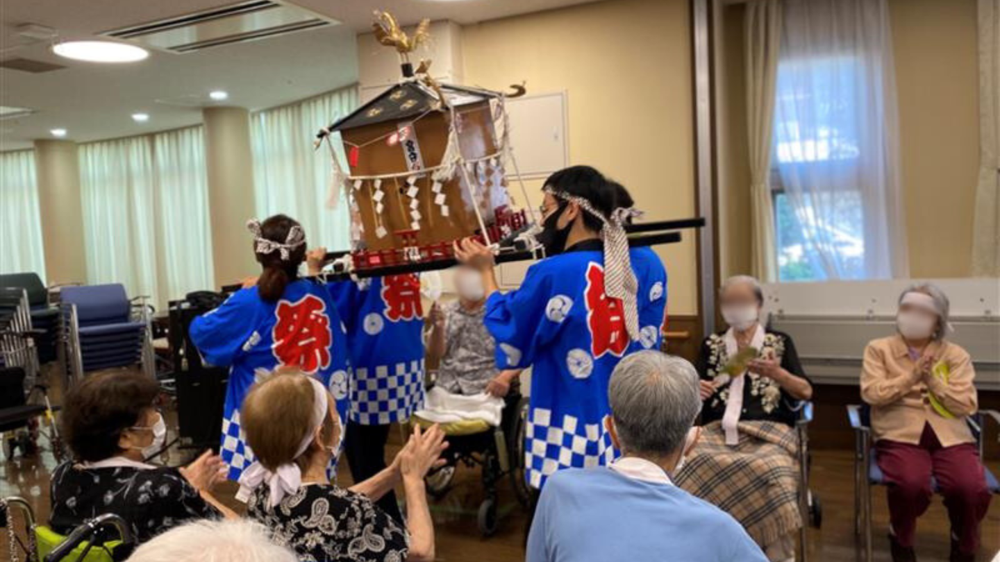 (👆Genki Groupの介護施設である大田翔裕園の納涼祭にお手伝いに行った時の写真です!現場の方と一緒にお祭り姿に身を包み、会場を盛り上げました!🔥)