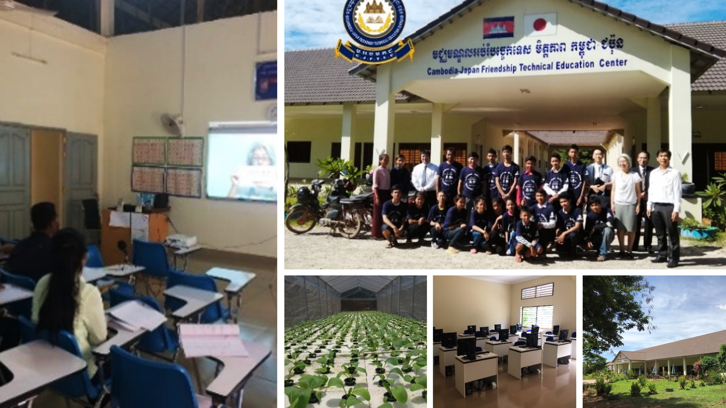 👆カンボジア日本友好技術教育センター。写真左側は日本語授業の様子です。