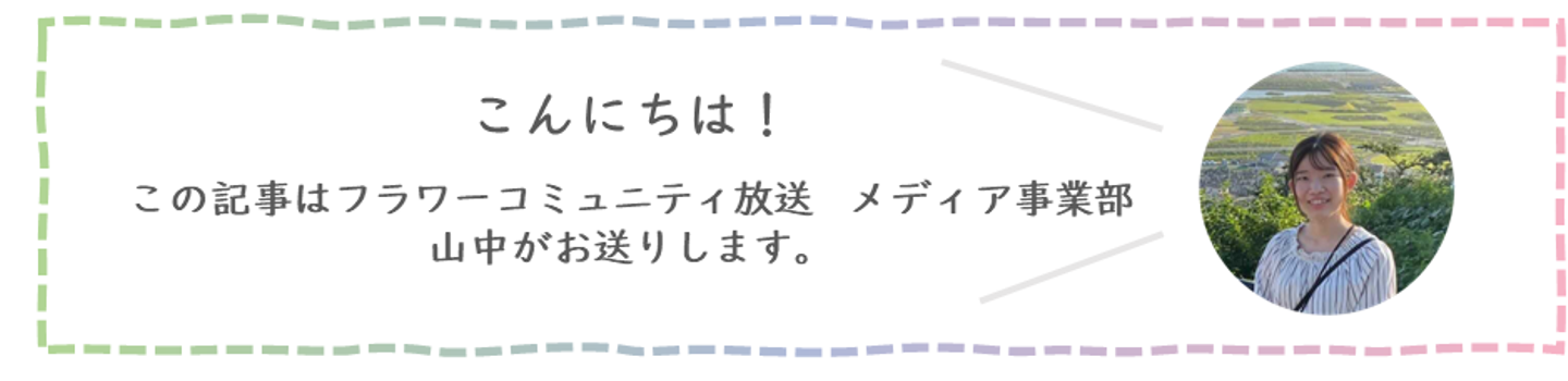 こんにちは。フラワーコミュニティ放送の山中絵理奈です。