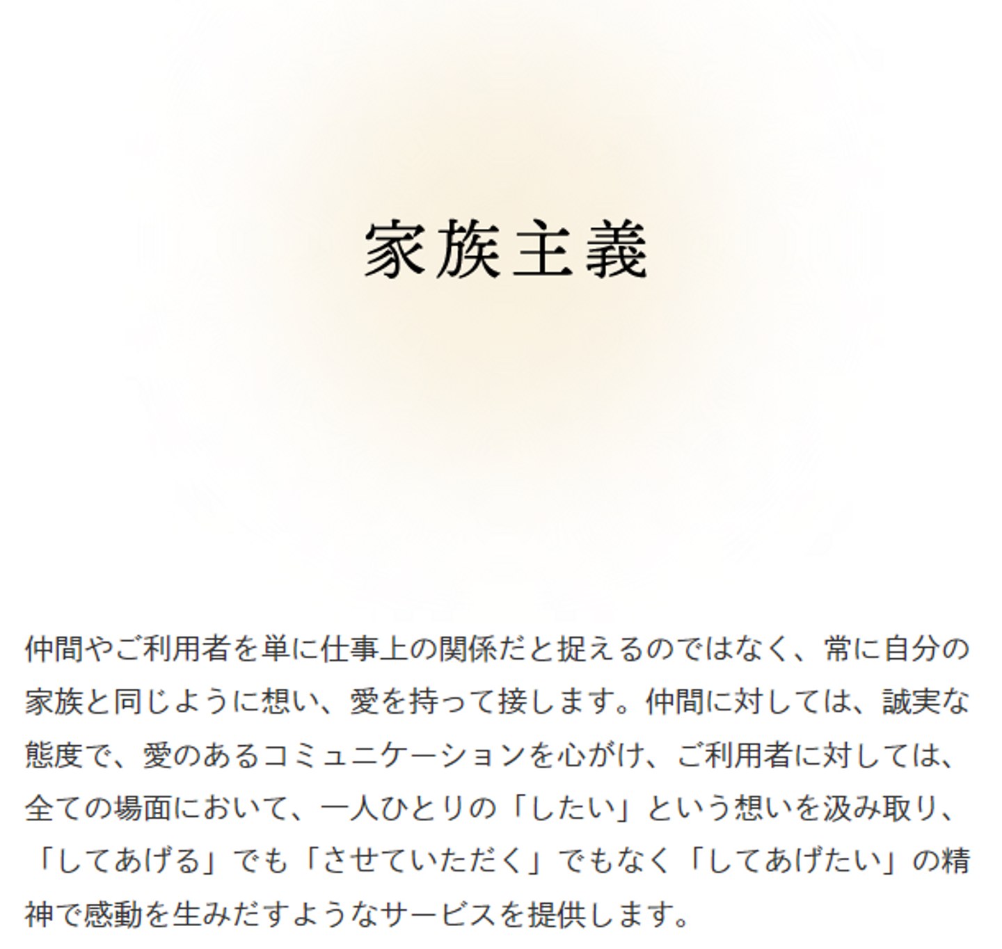☝引用元:元気村グループホームぺージ内、「元気村グループの想い」より抜粋。グループとして大事にしていることの一つに“家族主義”があります。