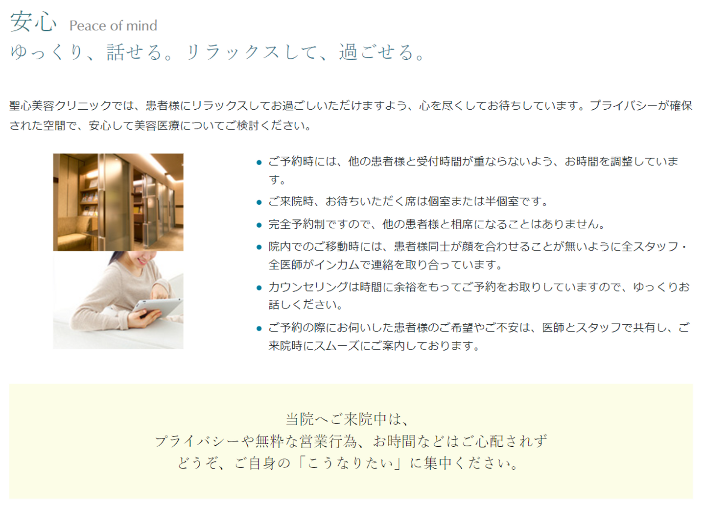☝聖心美容クリニックHP / 当院について / 選ばれる5つの理由 / 安心より引用