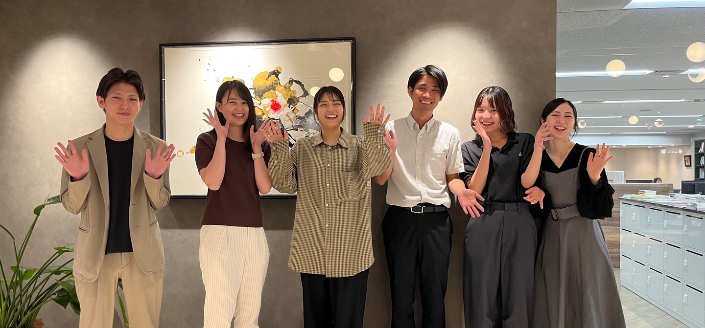 ☝左4人がNLP、右2人がバックオフィスで入社してくれた新卒たちです!