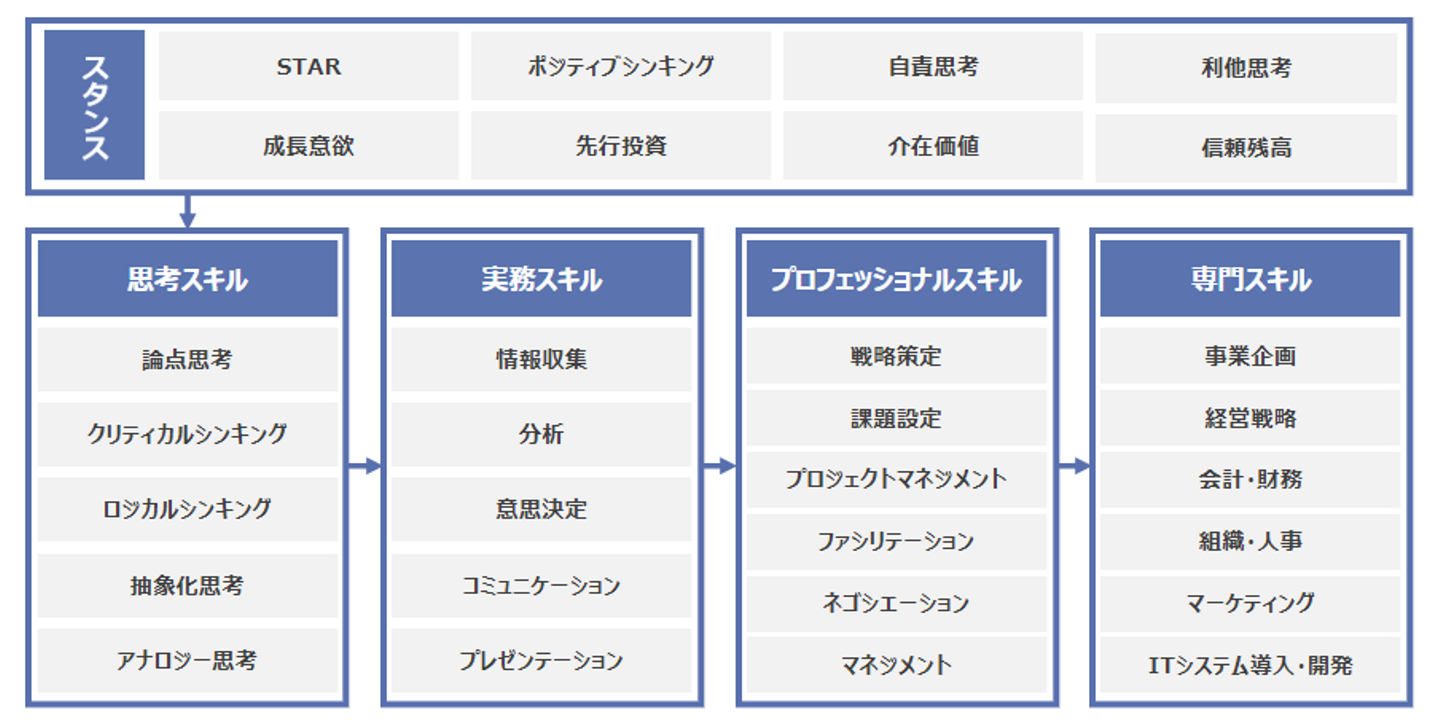 スタンスからプロフェッショナルまではどの仕事にも求められるもので、専門スキルは業務によって使い分けるようなイメージでしょうか。「仕事が楽しくないのは、仕事ができないから」という人もいると思いますが、その通りだと思います。できる仕事が増えてから、さらに仕事を楽しめるようになったと思います!