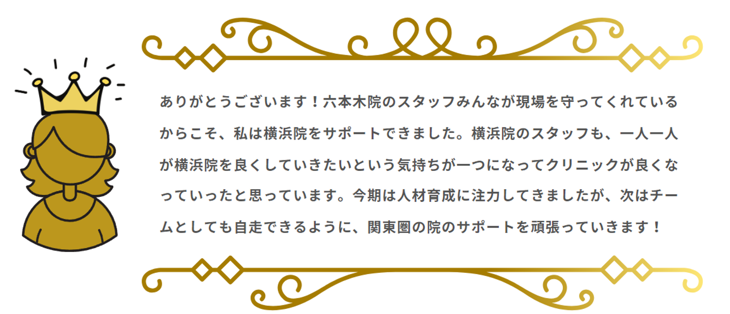 💌受賞者へのコメント 聖心美容クリニック マネージャー Hさん💌