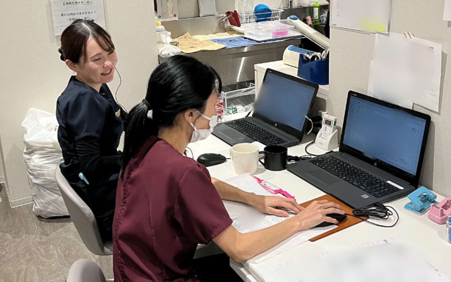 森)みんな前向きで、院長が掲げた目標に対して頑張ろうという気持ちの強いスタッフが多いです。基本的にみんな明るく、和気あいあいとしたアットホームな雰囲気です。