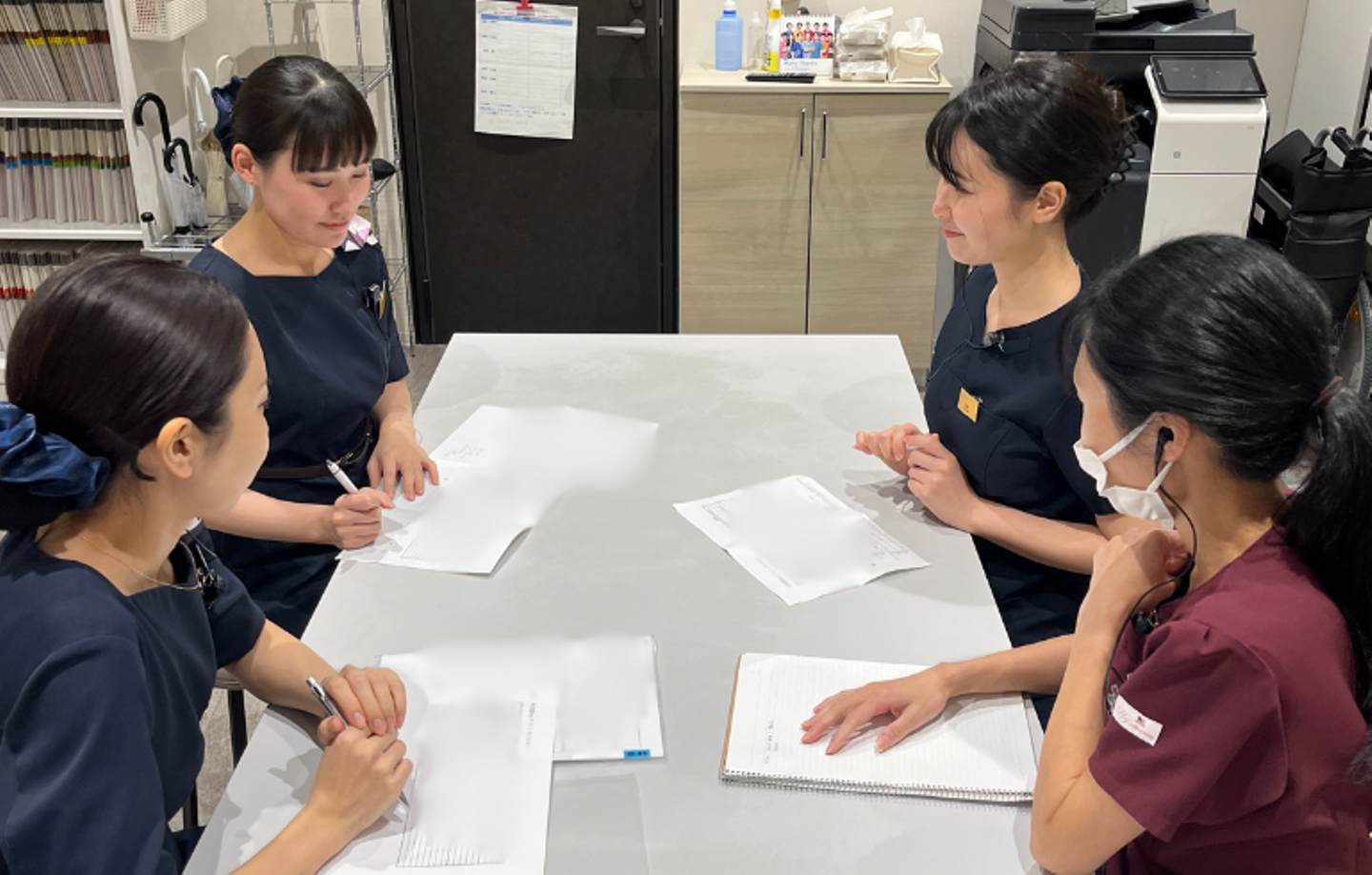 大谷)中辻院長の言葉にもありましたが、医師が1人なので孤独を感じることもあると思います。中辻院長も日々忙しく、患者さまやスタッフのために頑張っています。受付とナースでもフィードバックし合える環境を作ることが課題です。私も数年前は苦手でしたが、役職者としての責任をもって発信するように頑張ってきました。今は個人として乗り越えたと思いますが、後輩にも背中を見せていきたいです。伝え方を工夫しながら関わっていきたいです。
