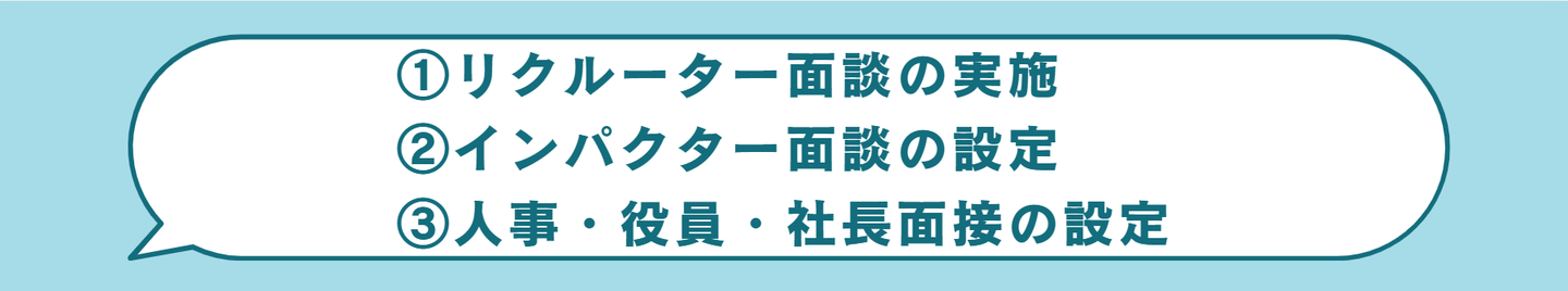 基本的にリクルーターが実施することは、大きく分けて上記の3つです。担当学生の状態に合わせて最適なフローをオーダーメイドで設定していきます。