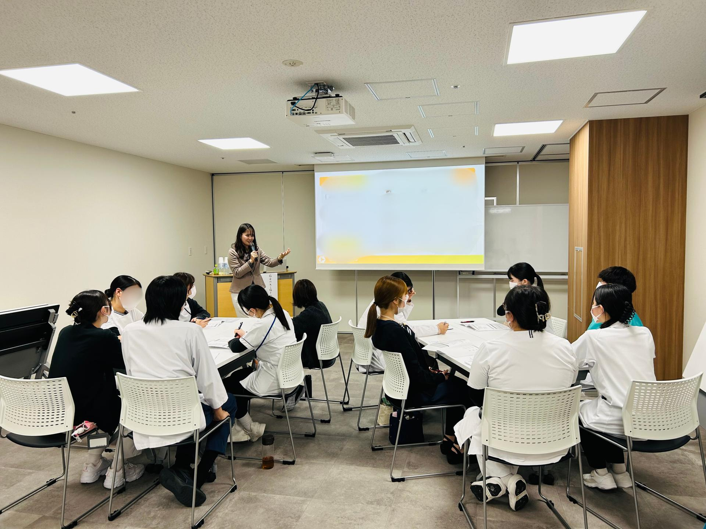 新卒1年目の看護師さん・リハビリ職員さん・事務職員さんを対象とした2時間半の研修を実施しました。講師としての初めての研修だったので大変緊張しましたが、参加者の皆様の積極的な姿勢と温かい笑顔のおかげで最後までミスなく、伝えたいことを全て伝えきることができました。