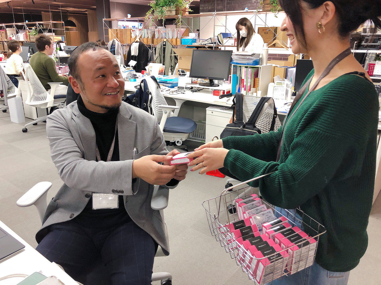 男性社員の嬉しそうな笑顔を見て女子社員もにっこり!