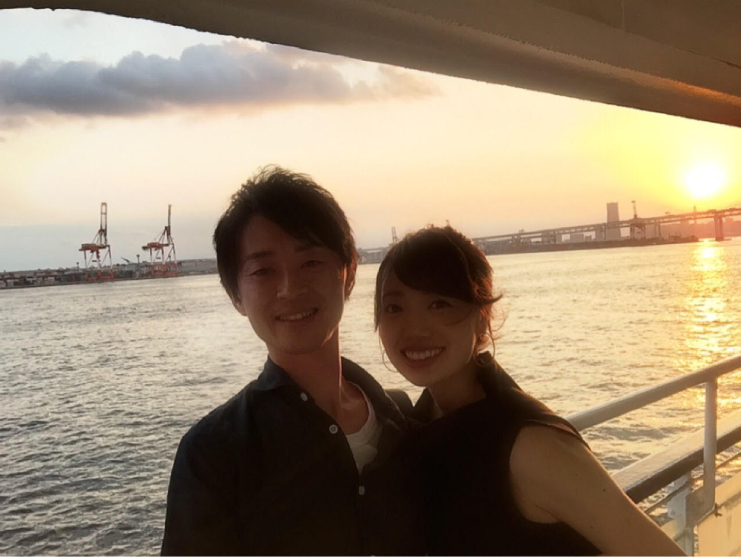 (旦那さんと。横浜でクルージングディナーをした時の一枚。)