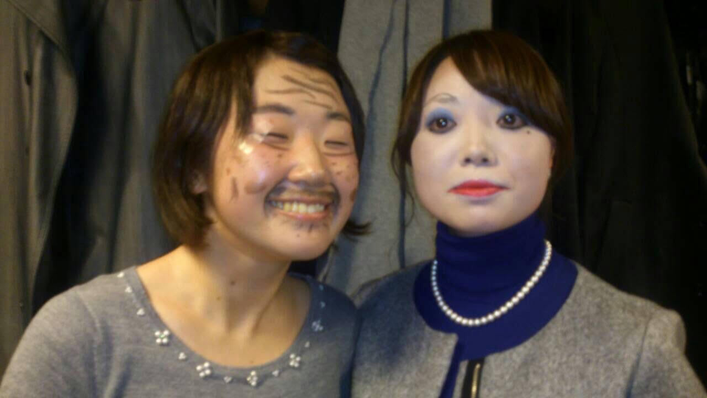 (毎年恒例、忘年会での体を張った全力の出し物 笑。この年流行っていたエレキテル連合のあけみちゃんに扮しネタを披露。社員からおひねりも飛び大成功でした!)