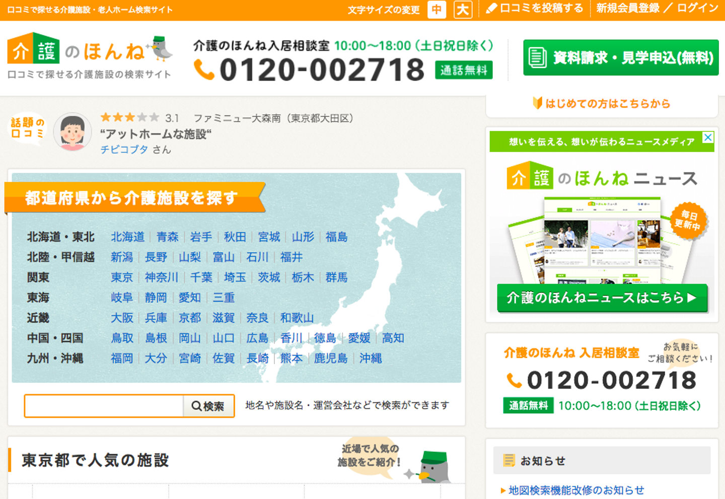 ・介護施設を選ぶための口コミサイト「介護のほんね」