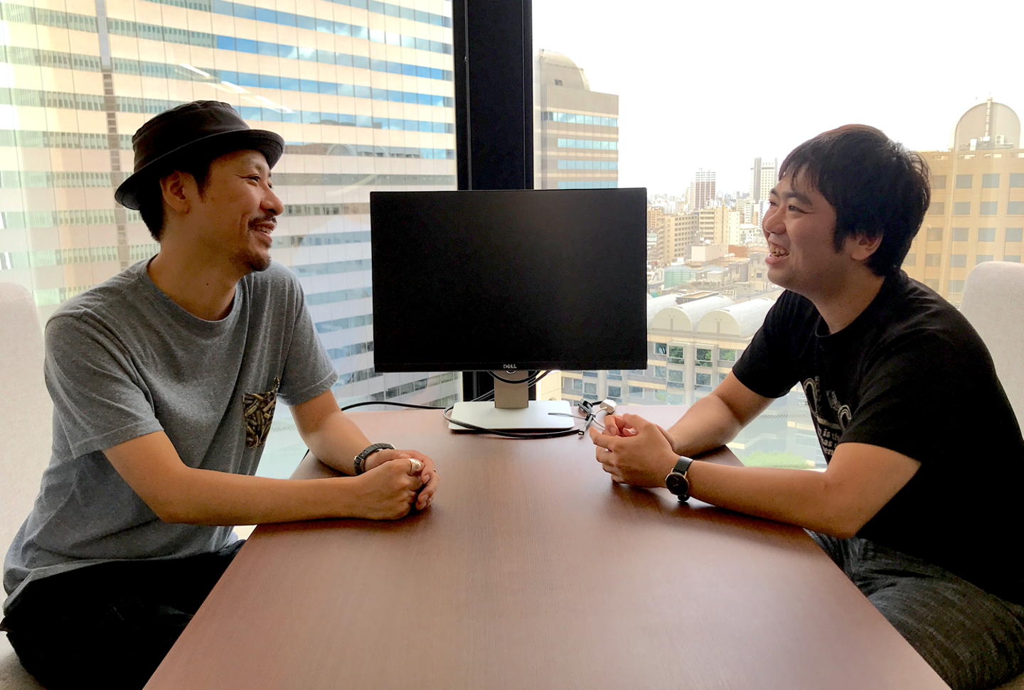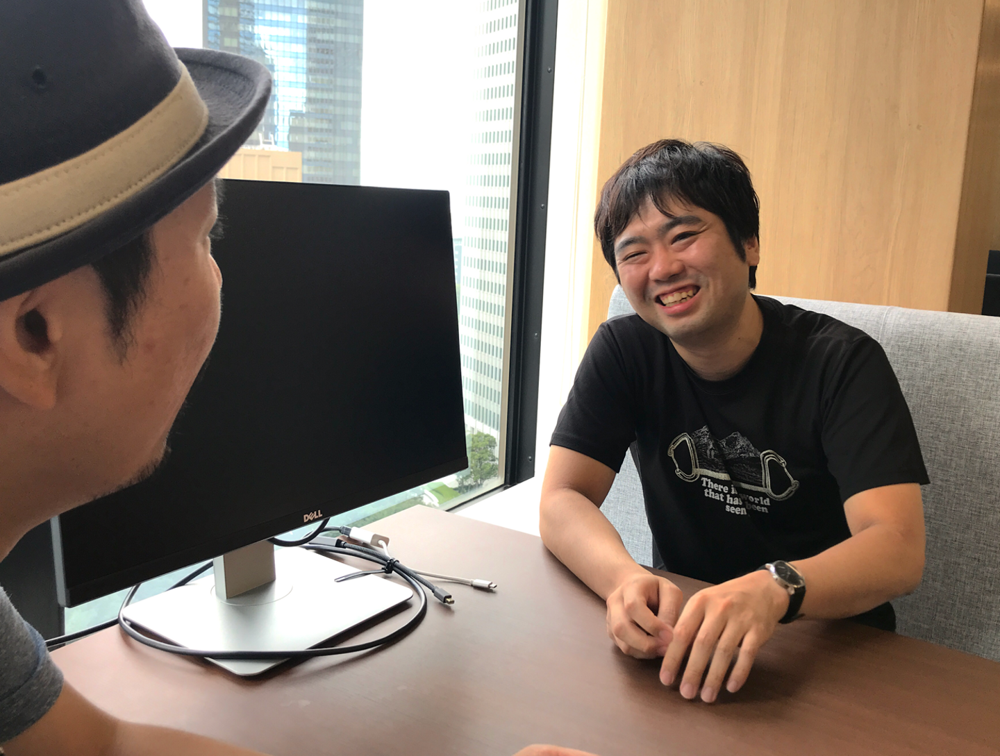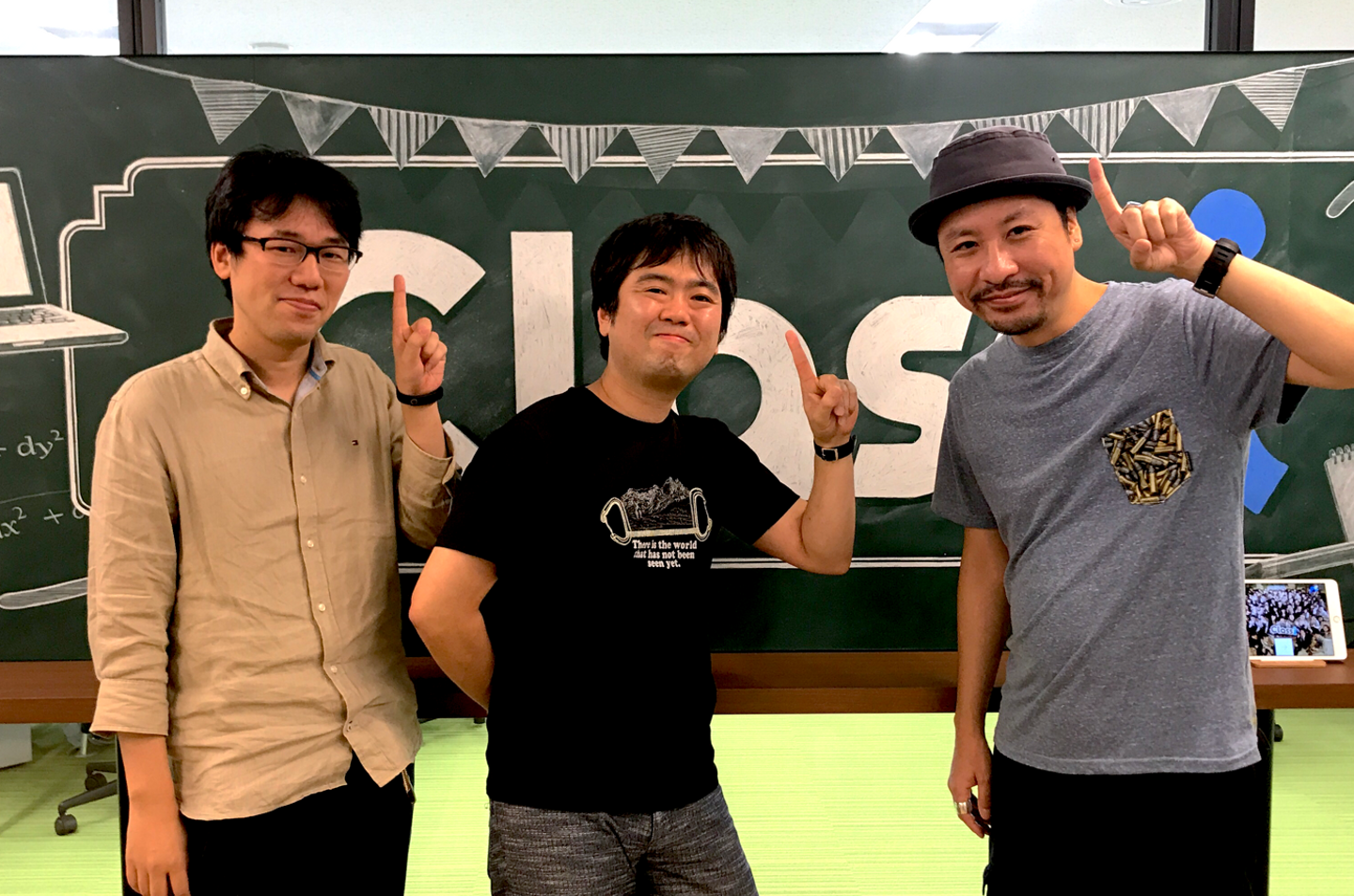 (平木と前職で同僚だったClassiのエンジニア・八谷さんが取材中に遊びに来てくれて、一緒にClassiポーズを撮ってみた絵)