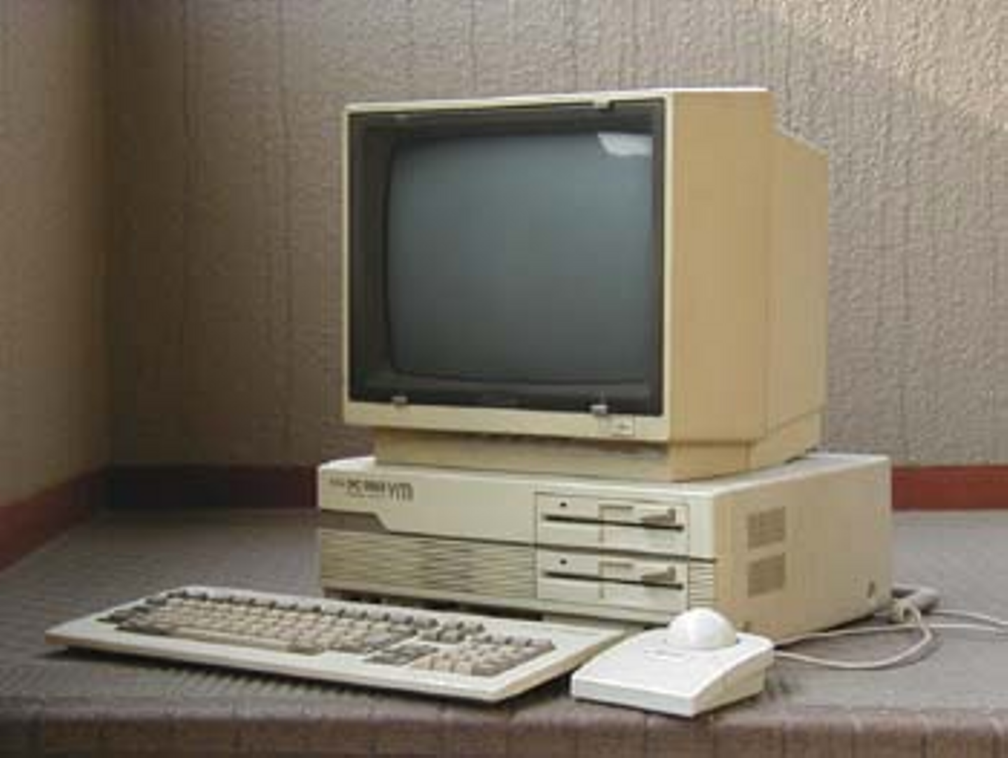 PC-9801。上記はVM21。5インチフロッピーディスクドライブ搭載。ペラペラなフロッピーディスクが懐かしい…( http://hidechang.s14.xrea.com/pc/vm21.xhtm より引用)
