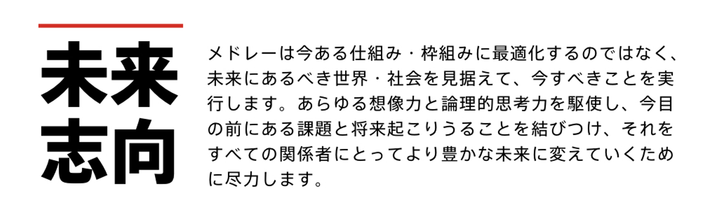 メドレーでは今年の1月に実施した社内の全体会議で、以下の3つについて発表しました。