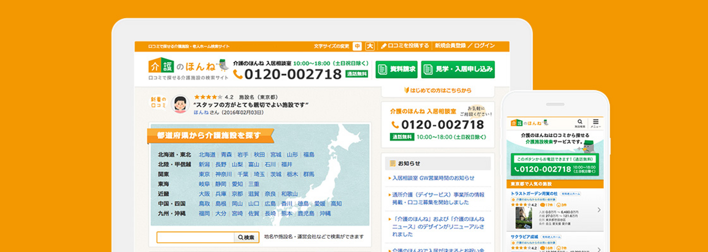 ・介護施設を選ぶための口コミサイト「介護のほんね」