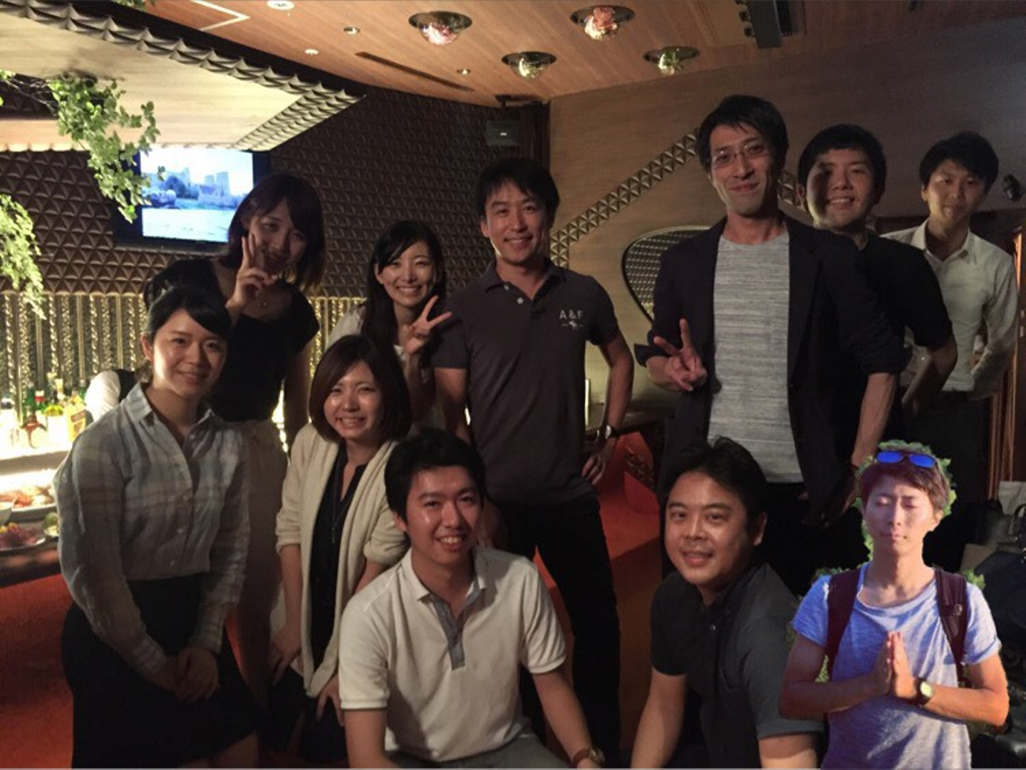 (インターンメンバーの送別会での写真。約1名、天に召されかけています)