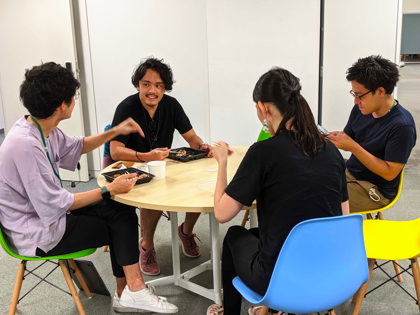13時頃からオフィスでランチ。どこかに食べに行くこともあるが、この日はCXOの吉村、エンジニアの白柳、坂本とオフィス近くの博多料理店で買ってきたお弁当を食べていた。大熊は食事のスピードが早く、一番に食べ終わることが多い。おかわり無料のお店では、ほぼ毎回おかわりをする。
