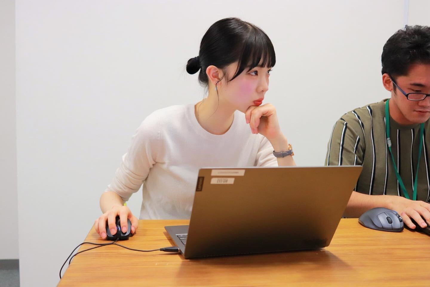 メンバーの雰囲気ですね。心が温かいメンバーが多くていいなと思います。私は頻繁に誤字とかミスをするんですけど、「またかよ~」って優しく注意してくれたりとか、あとは気軽に「お昼ごはん一緒に行こうよ」って誘ってくれたり、アットホームな雰囲気がすごく居心地がよくて私的な推しポイントです。ミスが多くても見捨てずに育ててくれる環境のおかげで、長期インターンを1年半くらい続けることが出来てるし、これからも頑張りたいと思えています。