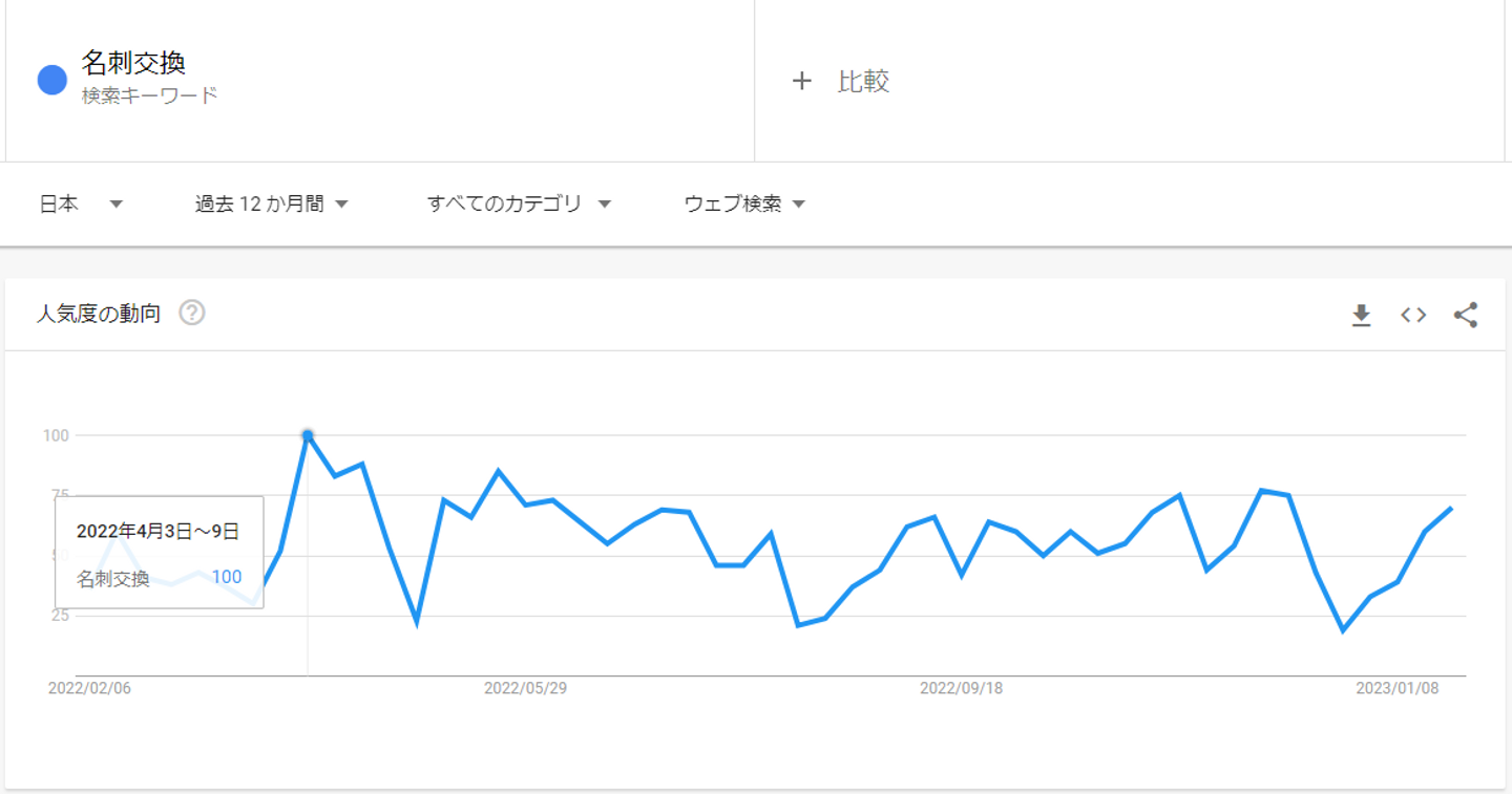 1カ月に「名刺交換」が検索される回数は約8,000回。とくに4月に検索するユーザーが最も多い。この事実から「新卒の方が検索している」と仮説を立てて、ペルソナに「新卒」を設定。新卒の人が初めて名刺交換を行う際のわかりやすい記事を書いている。