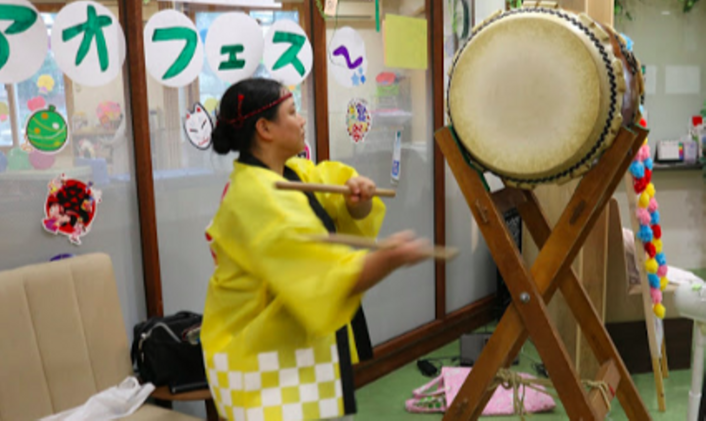 まいさんの太鼓の音にあわせて手を叩いたり、踊ったり、楽しそうな入居者様✨