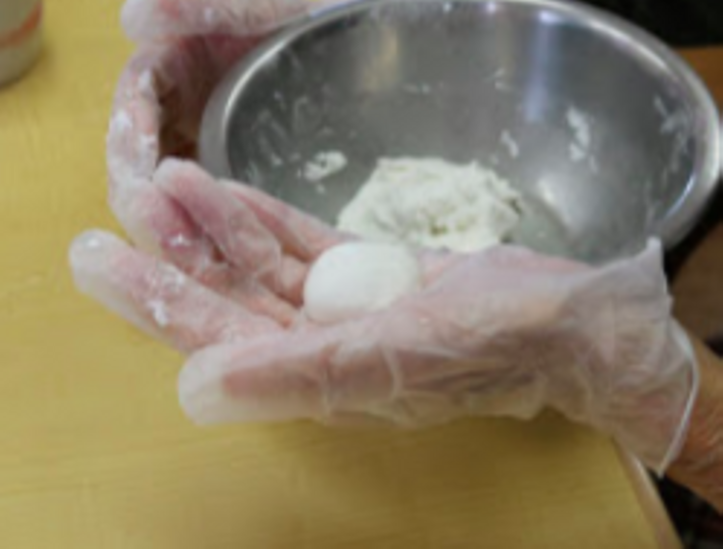 ひとかたまりになったら、小さくちぎって丸めます♪