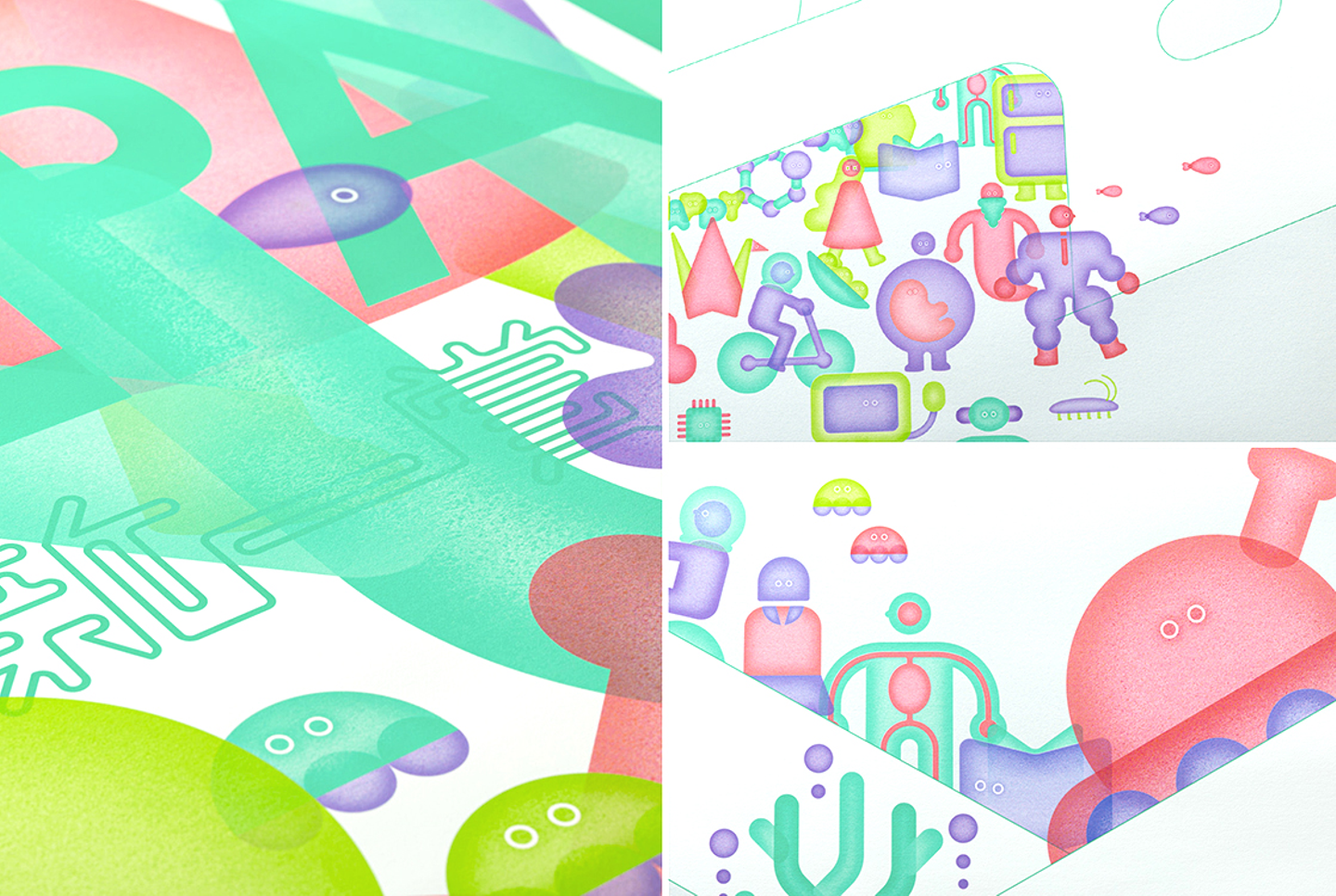 後藤:そうですね、星新一賞の精神や目的を象徴するコンセプトであることを意識しました。未来への無限の可能性を探求し、創造力を駆使して新しい物語を紡ぎ出すことを奨励する意味を持っています。また、記念すべき第10回ということもあり、過去すべての受賞作品をキャラクターとして一からデザインしました!各キャラクターが異なる未来の旅に向けて乗客として表現されているんです。