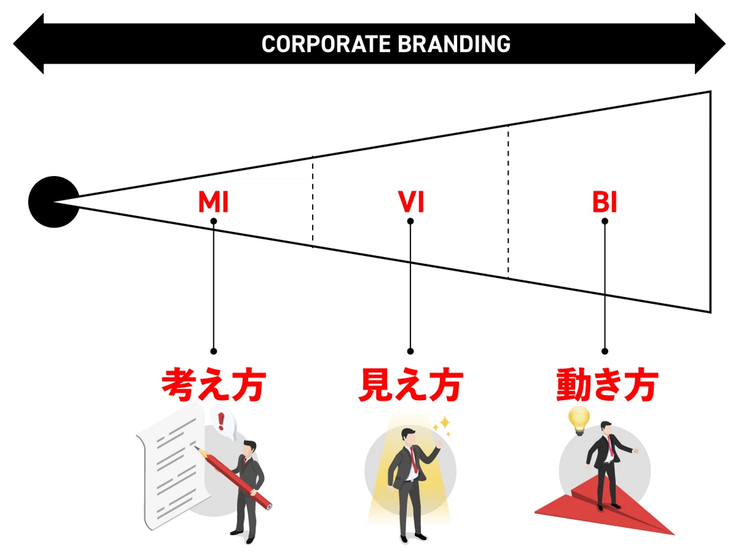 そのため、企業理念が固まっていない状態でロゴから始めてもうまく行きません。コーポレートブランディングはMI→VI→BIの順番で進めましょう。
