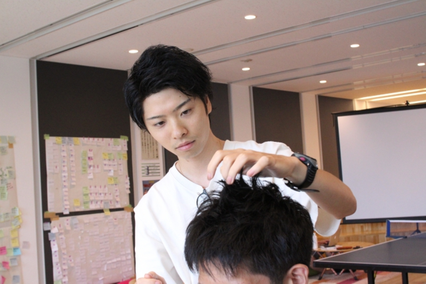 彼の美容師としての経験は、必ずヘアラボの武器になるはず。すでに、スタイリングの方法などについて積極的に編集者にアドバイスを行っている姿がみてとれました。