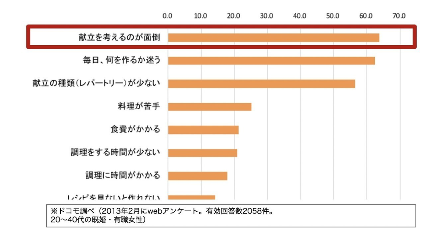 忙しい中で毎日料理をすること、献立を考えることの大変さを実感しました。(家事アウトソーシングなどのサービスを日常的に利用することで課題回避できる方は別で、ミーニューの主なターゲットからは外れます)『忙しい毎日の中で』料理・献立考案するのは、次の理由で超大変なのですよ!