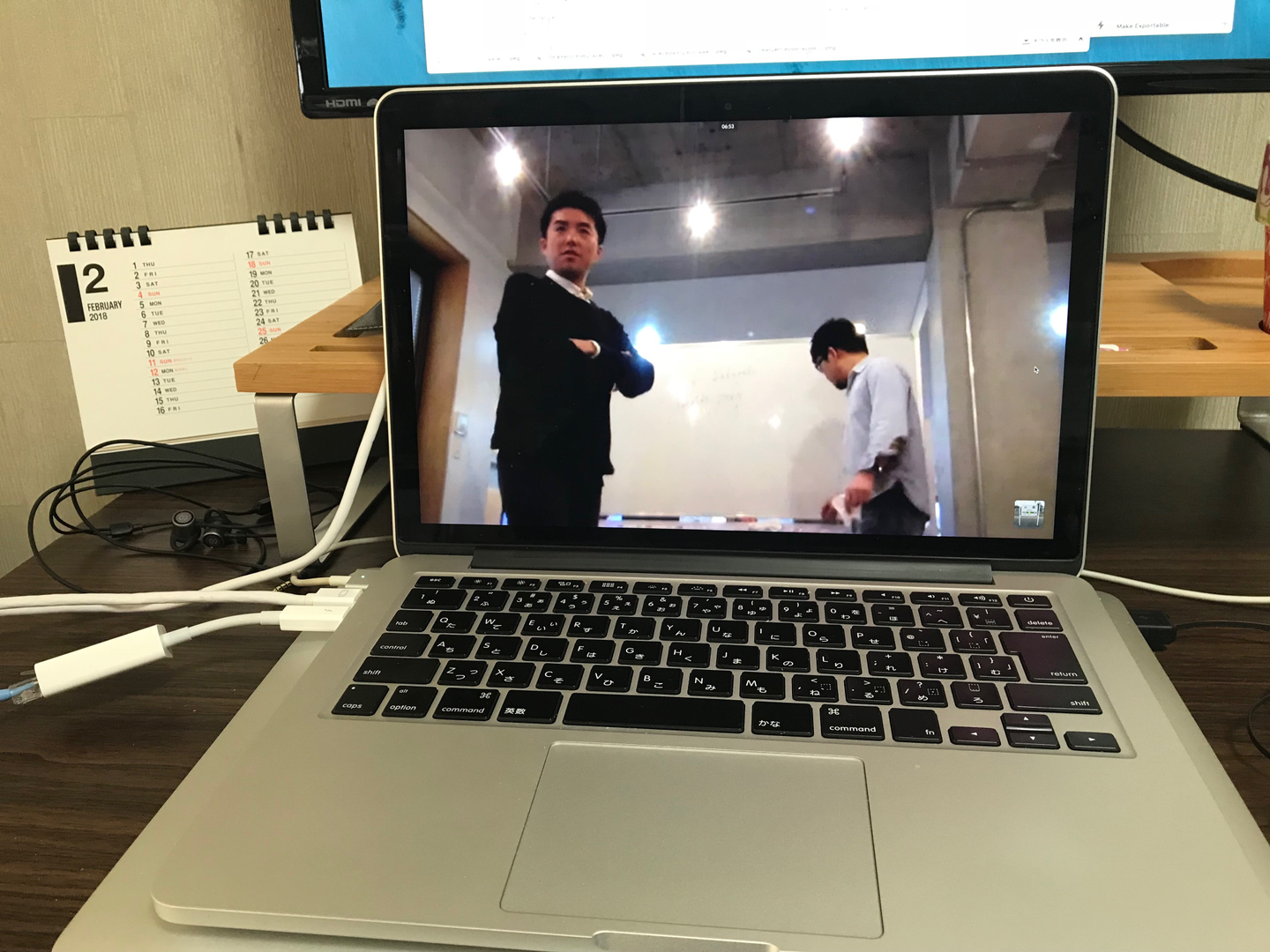 ミーティング中。ホワイトボードは全く見えません(ToT)