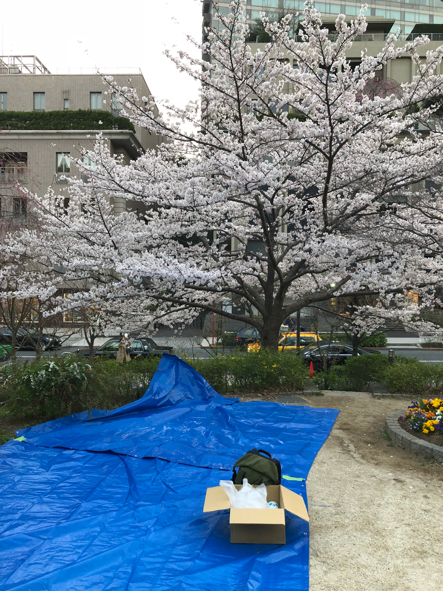 しっかり場所取りもして準備万端。桜も満開でいい感じ♪