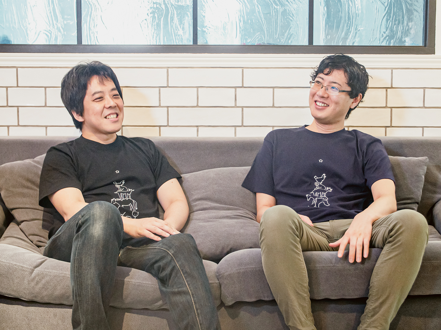 ▲二人が着ているのは開発部オリジナルTシャツ。社内でも「かわいい」と評判のこのTシャツを着て次の技術書典を迎えます。