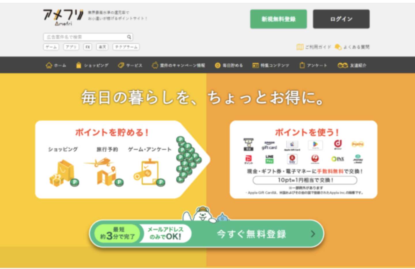 「アメフリ」は、他社が長年にわたり運営しているポイントサイトに比べて、後発でスタートしたサービスになります。