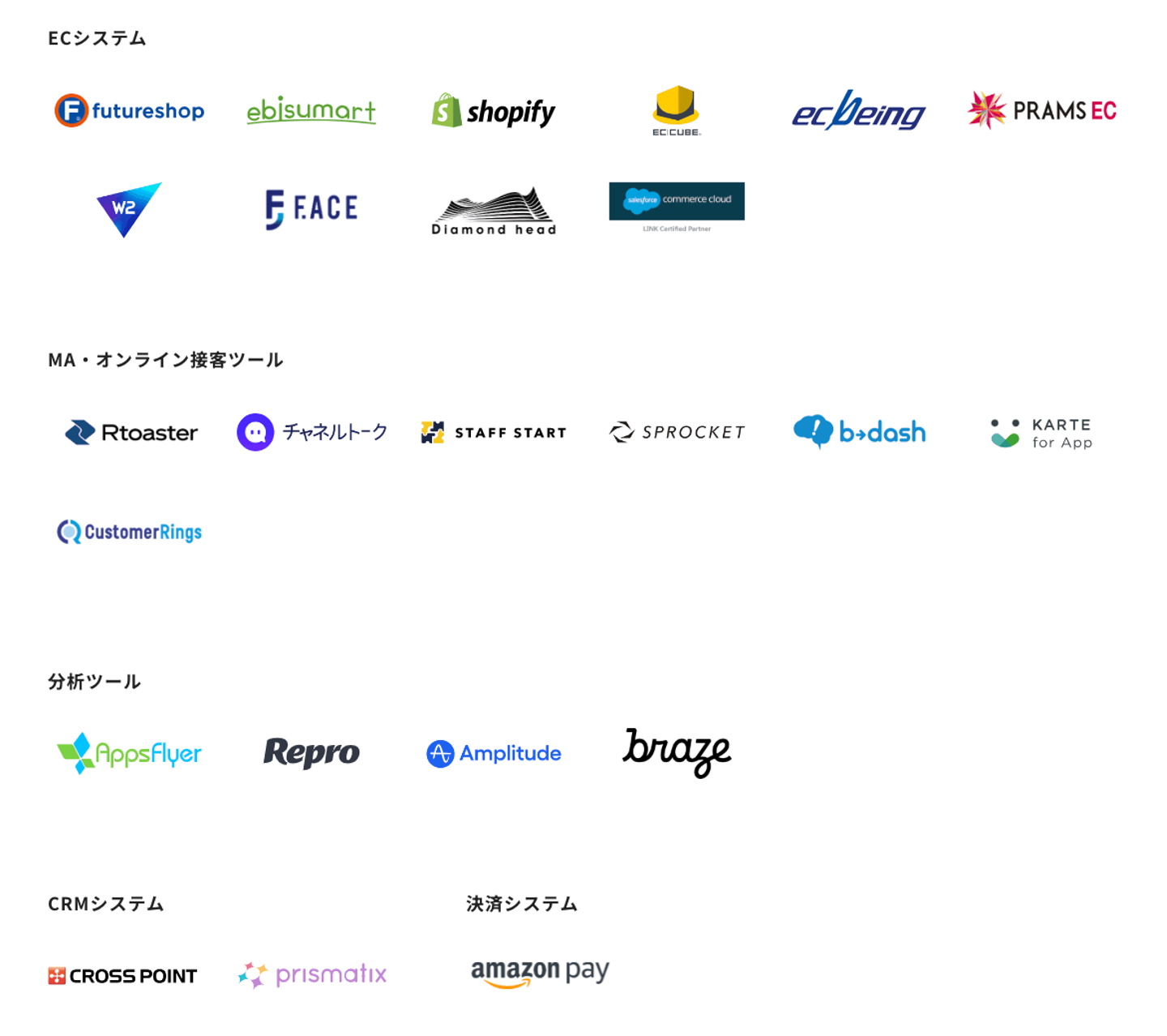青山フラワーマーケット様・THE NORTH FACE様・ダイエー様・パタゴニア日本支社様・阪急阪神百貨店様・ハンズ様をはじめ、アパレル・日用品・食料品を中心とした多くの企業に導入いただいています。