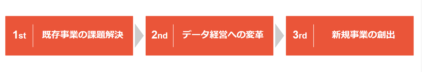 そして、ふたつめのステップ「データ経営への変革」を行ったあとに、みっつめのステップ「新規事業の創出」です。新規事業として新たな収益源を生み出していくのもDXの範囲内だと、MGReは考えています。