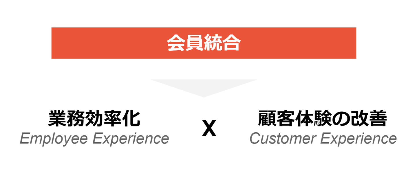 - 会員統合をすることで「業務効率化業務効率化(Employee Experience)」×「顧客体験の改善(Customer Experience)」を進められる