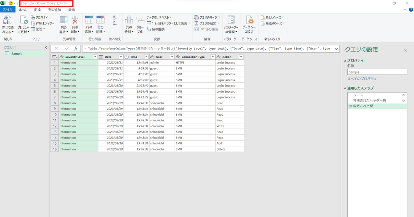 そうすると「Power Query エディター」が開くので、任意の箇所を編集することができます。