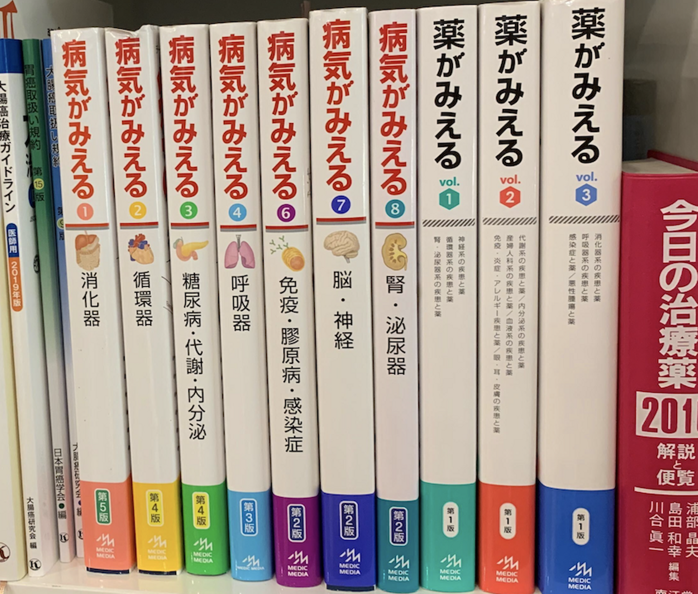 気に入ったので経費でコツコツシリーズを買い足し、今や弊社の本棚には「病気がみえる」のシリーズが全て揃っています。同シリーズ「薬がみえる」も結構揃ってます。