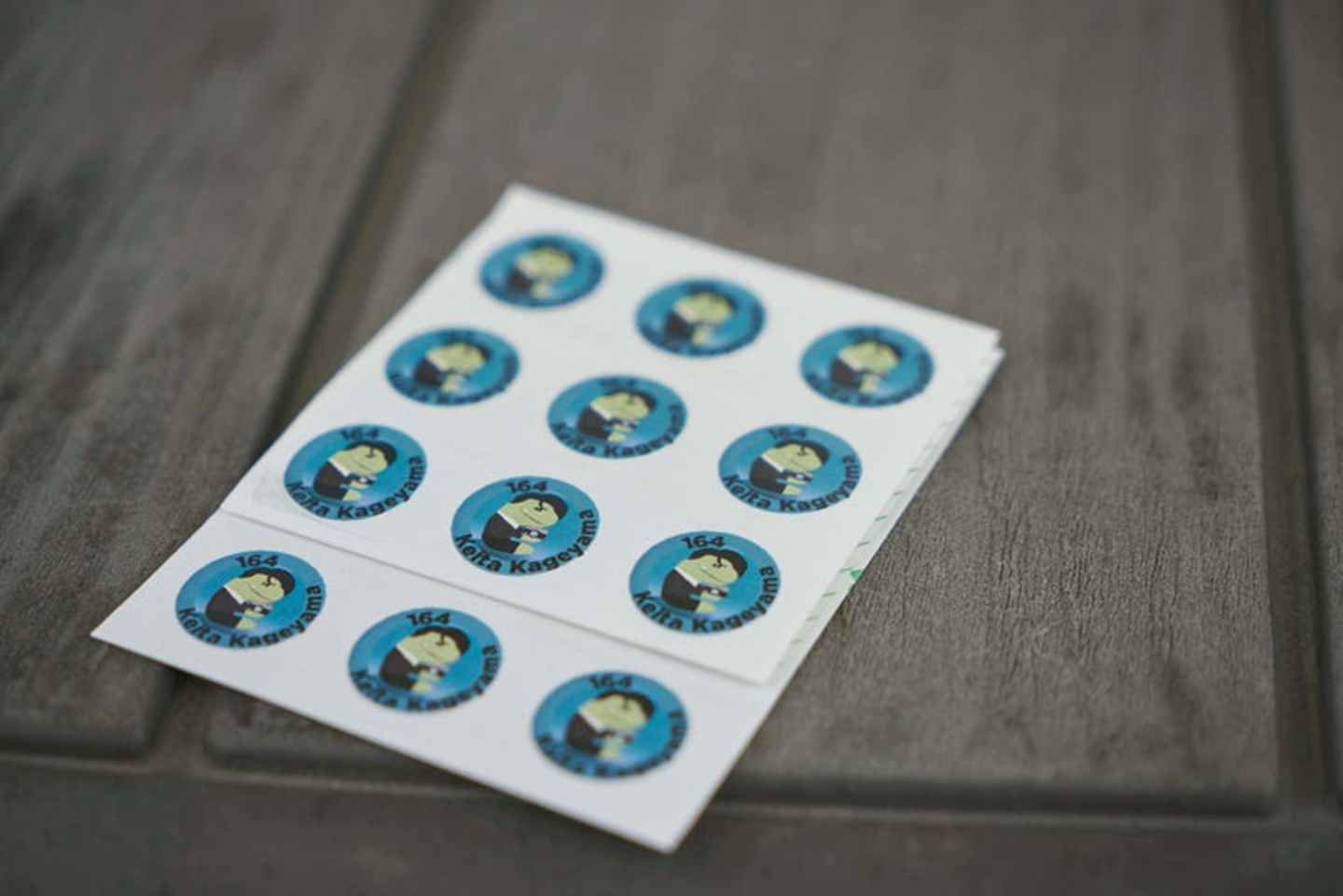 会場ですれ違ったり、同じチームになったときに、お互いのシールを交換してもらうこととし、夜のビンゴゲームに使おうというものです。