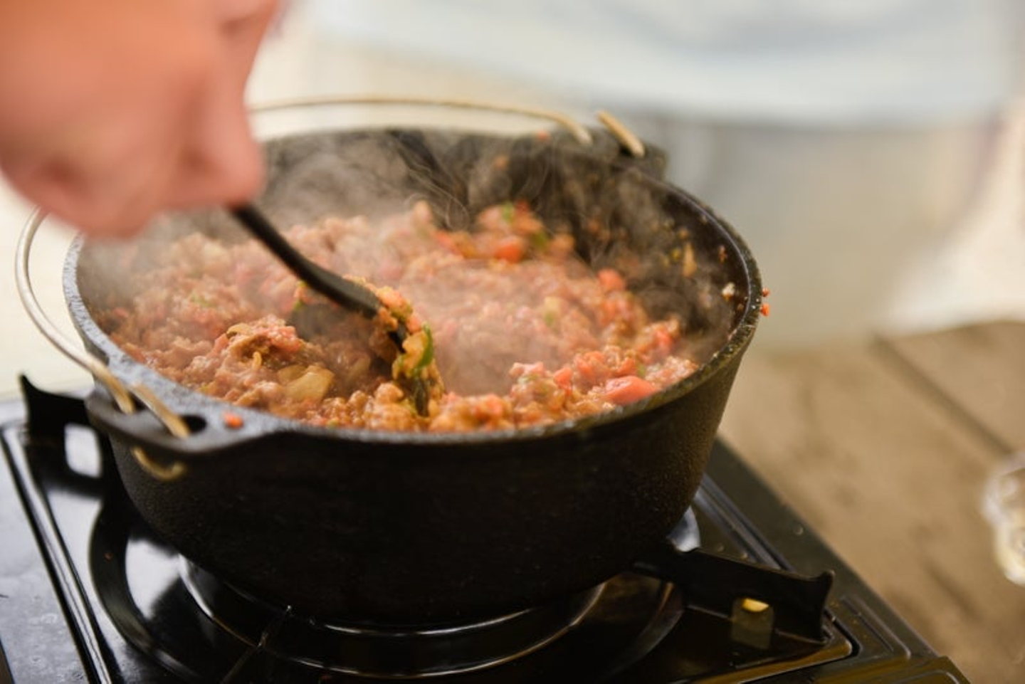 その後のランチはカレー&ナンと軽めのバーベキューです。作り方がわからない説もありましたが、とりあえず全部入れて炒めると無事にカレーになりました。