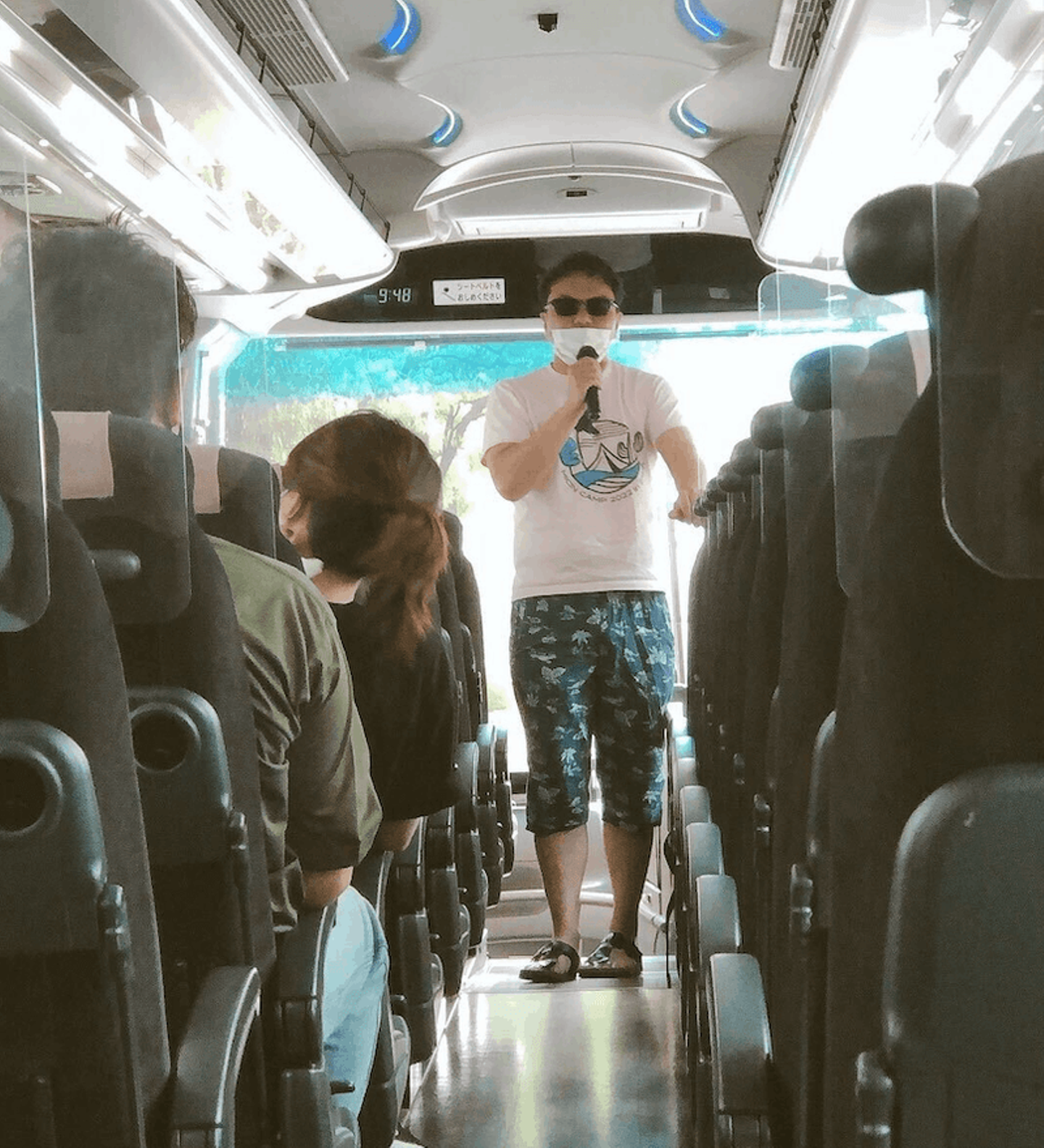運営主体であるHRチームは前入りしていましたので、チャーターバスには他部門の方に協力いただき、バスリーダーなる役割を設け、全体の確認や連絡係をお願いさせていただきました。