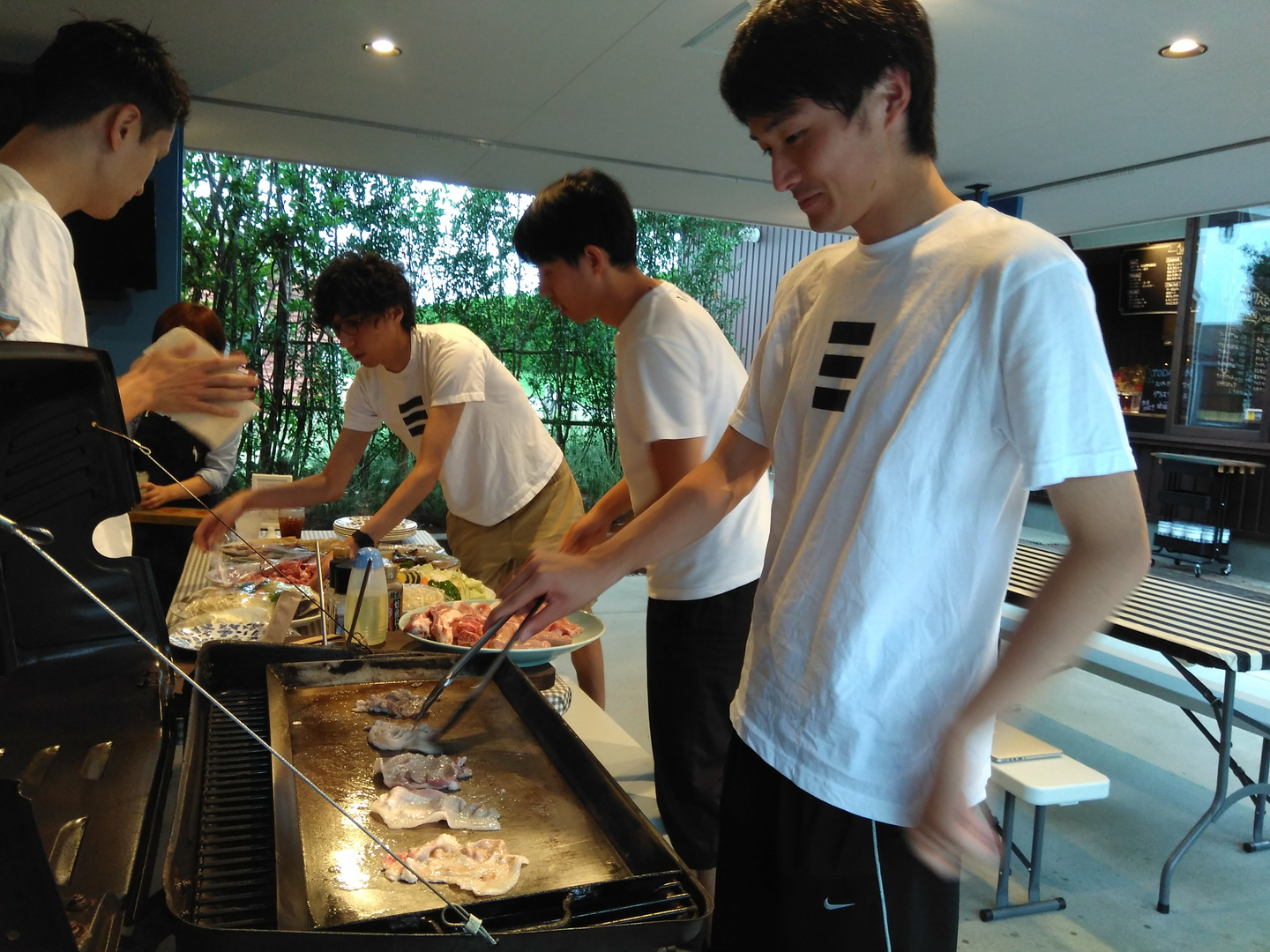 3台の車で九十九里浜へ→ランチ→テニス→ミーティング(今後の事業展開)→BBQ→ミーティング(360度評価+自分史)