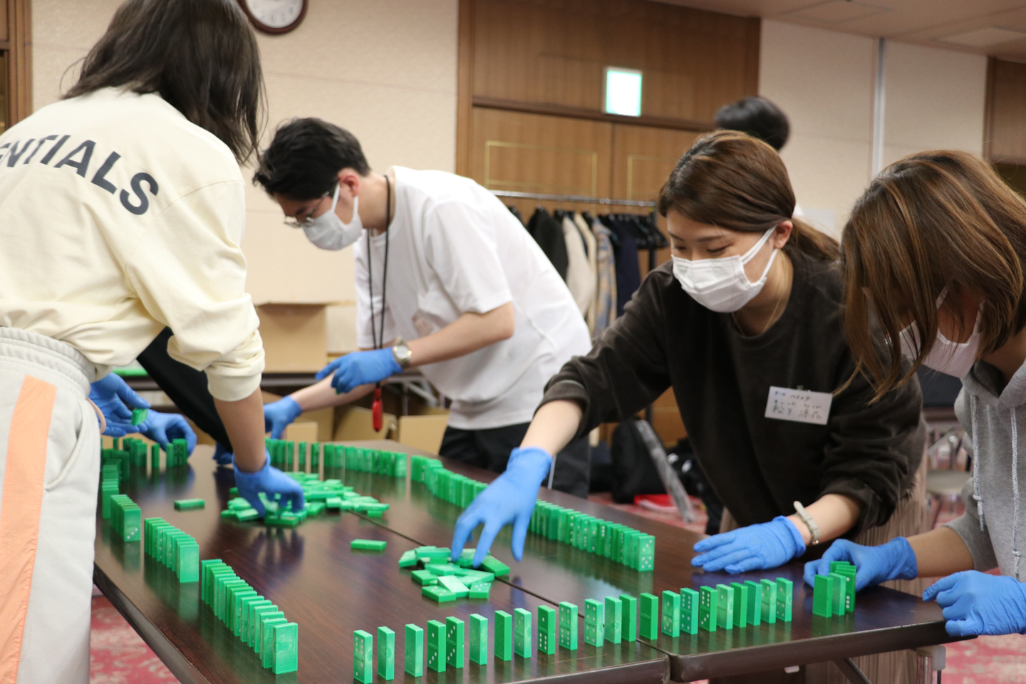 ↓200ピースのドミノを使ったチーム対抗のタイムアタック↓