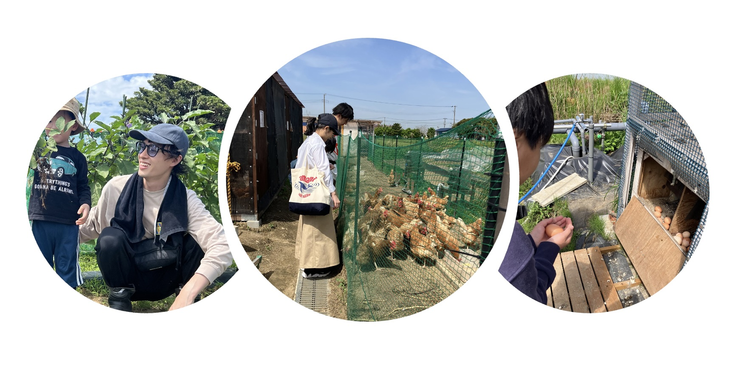 4月の田植えから年間の活動がスタートし、8月の収穫までは雑草を抜く作業をメインとしています。毎回帰りには、農園で育てている野菜(ミント、ルッコラ、枝豆、ミニトマトなど季節によりさまざま)を収穫したり、農園で飼育されている鶏の卵を持ち帰らせていただいています。