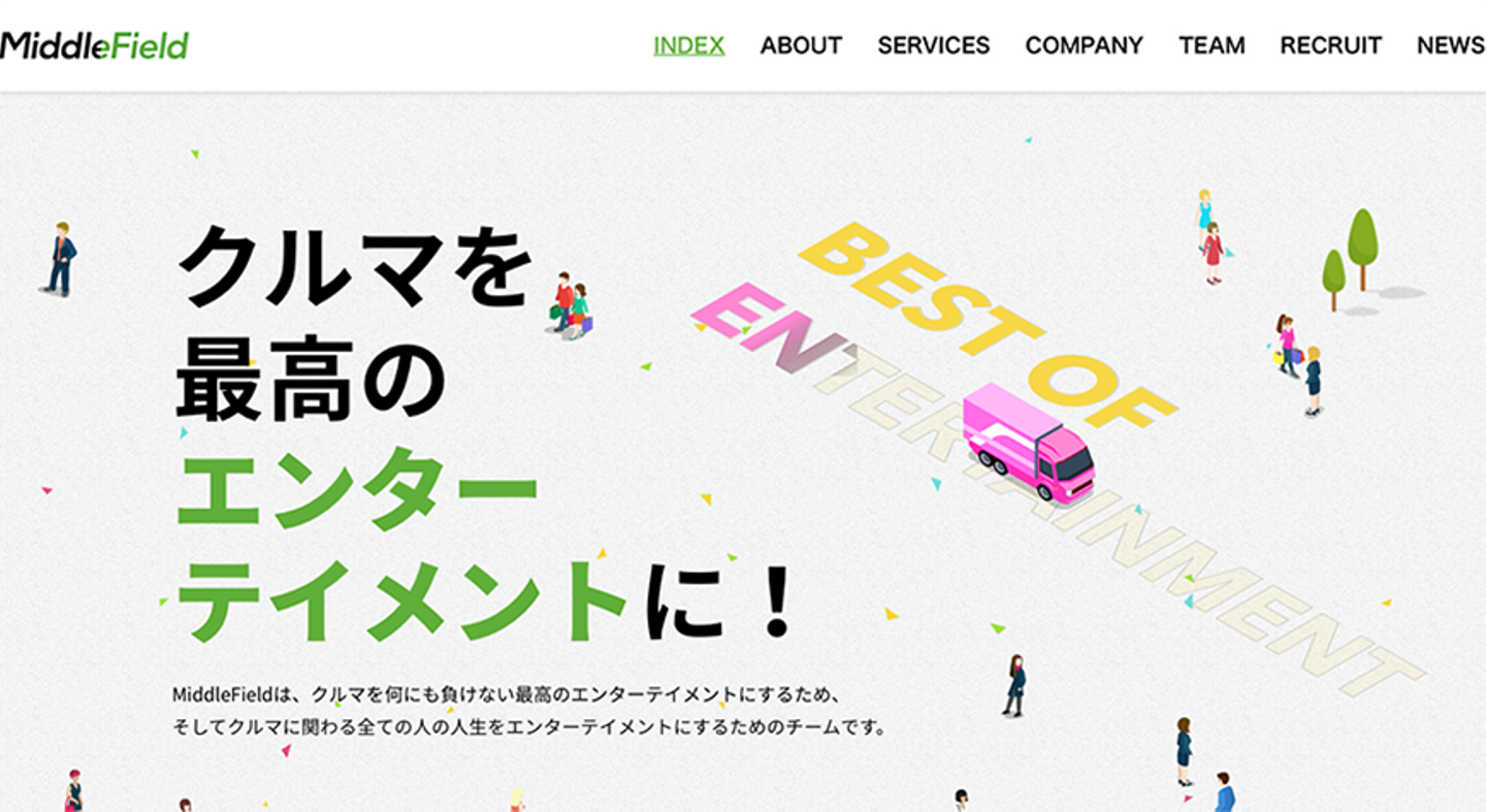 MiddleFieldはすべての人の夢の中間地点として 沢山の人が関わっていく社会を創り出します。 仲間、友人、家族、恋人、すべての人を『クルマ』という最高の エンターテイメントで繋げていくための中間地点でありたいと考えています。