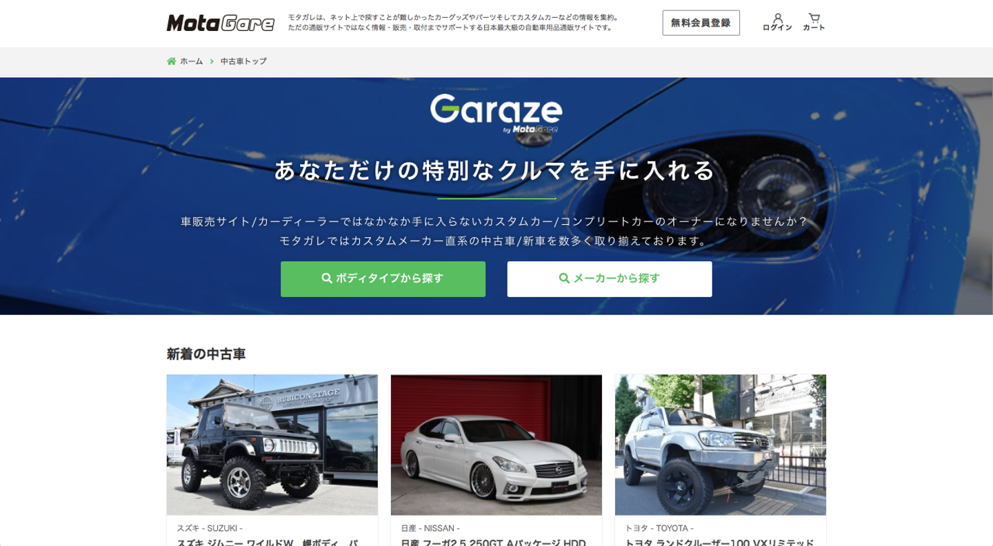 以前のブログでもご紹介しましたが、当社の運営するサービス「モタガレ」で中古カスタムカーの販売を開始しました。今回のサービス「Garage」、「ワクワクする中古車探し」をコンセプトに、「自分だけの1台」を探しているクルマが大好きな方々に、宝探しのような、且つ正しく情報を届けながらカスタムカーをまとめて検索・購入できるサービスとなっています。プレスリリース後、メディアに露出される機会も格段に増え、今後が楽しみです!