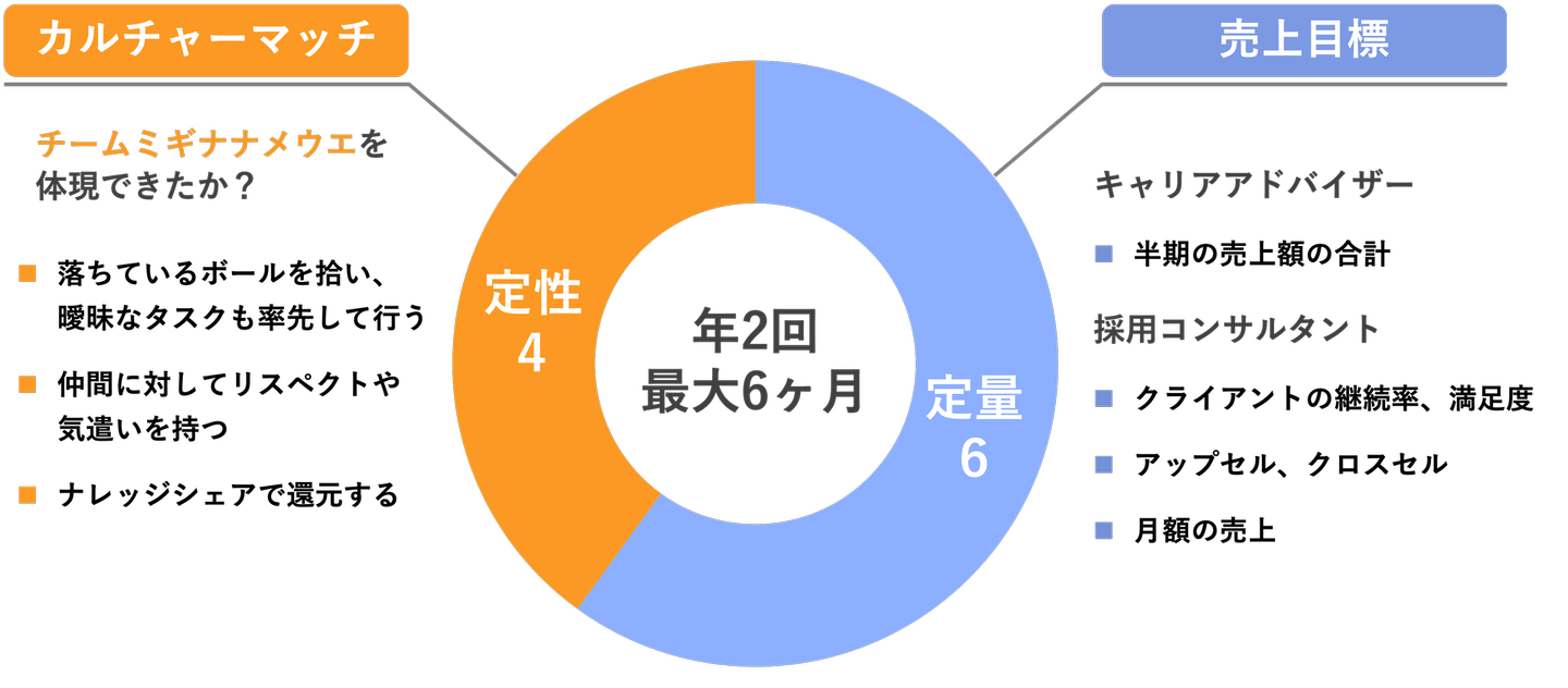 評価基準は、定量面(6割)と定性面(4割)の割合で決定され、最大で6ヶ月分の賞与が支給されることもあります。