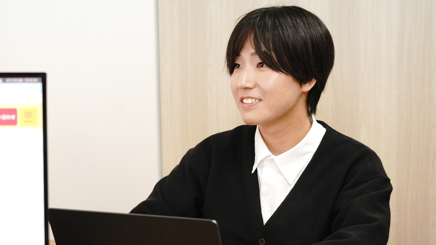 面接では最初に代表に会い、他社とは違って趣味や好きなことなどの話が多かったのが印象的でした。未経験であることは伝えてあったので、技術やスキルよりも成長の余地や人柄を見てくれたのかなと思います。何より、代表が堅苦しくなく、若くてなんでも相談しやすそうな感じが安心して入社できた理由です。