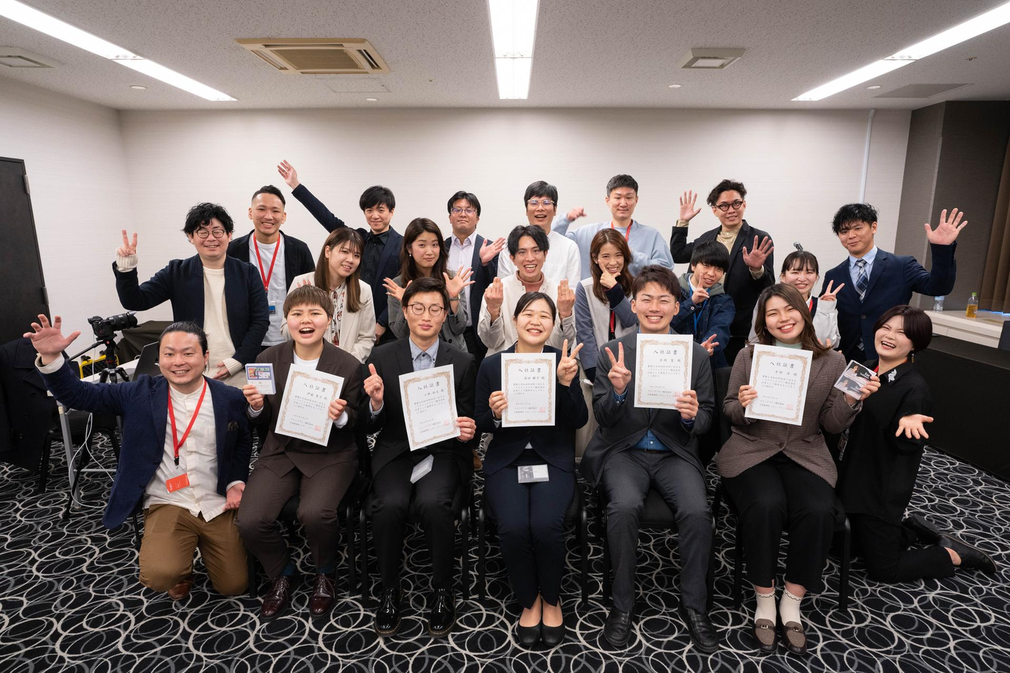 関西圏の大学はもちろん、名古屋、東京の大学からも入社を決めてくれたメンバーです。